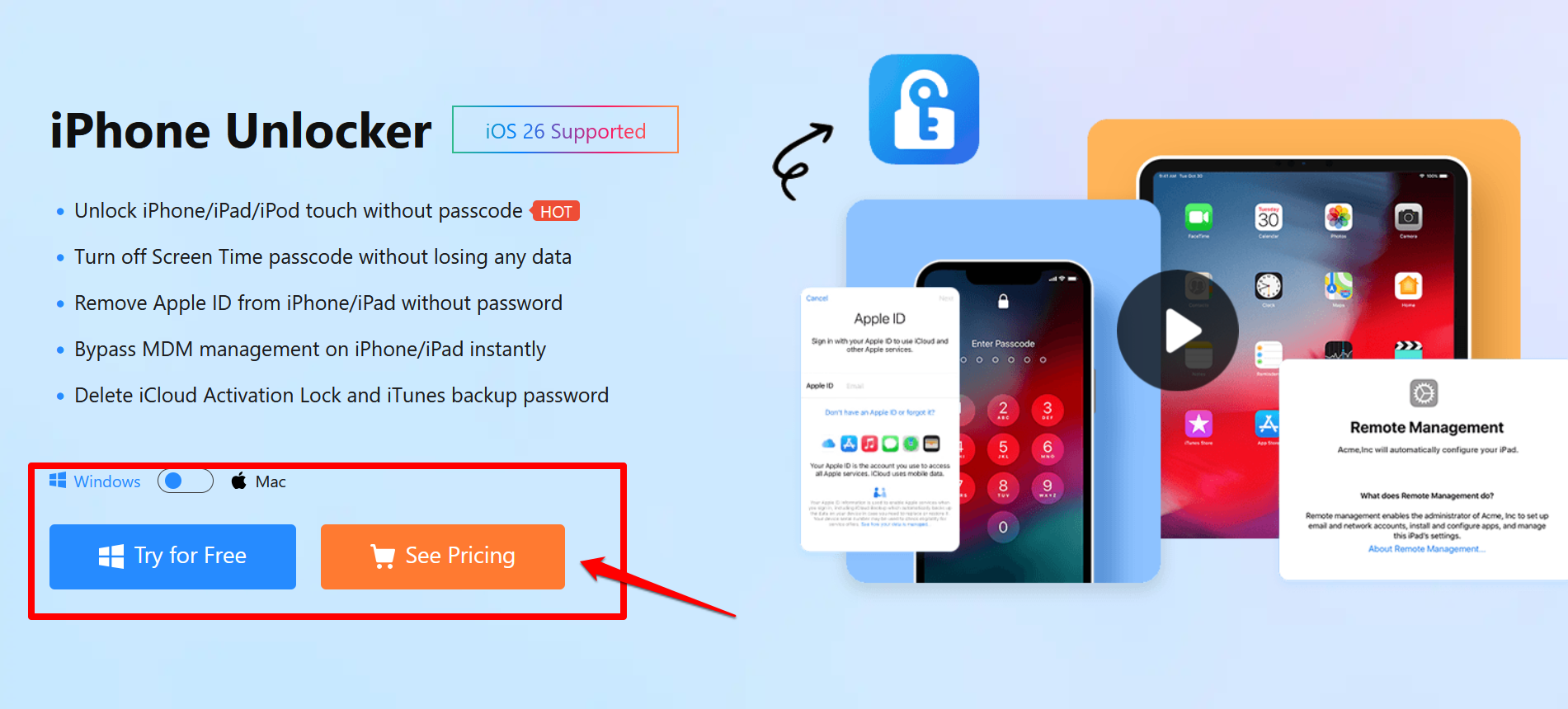- Bypass Activation Lock: Remove the lock screen on iPhone, iPad, and iPod touch.